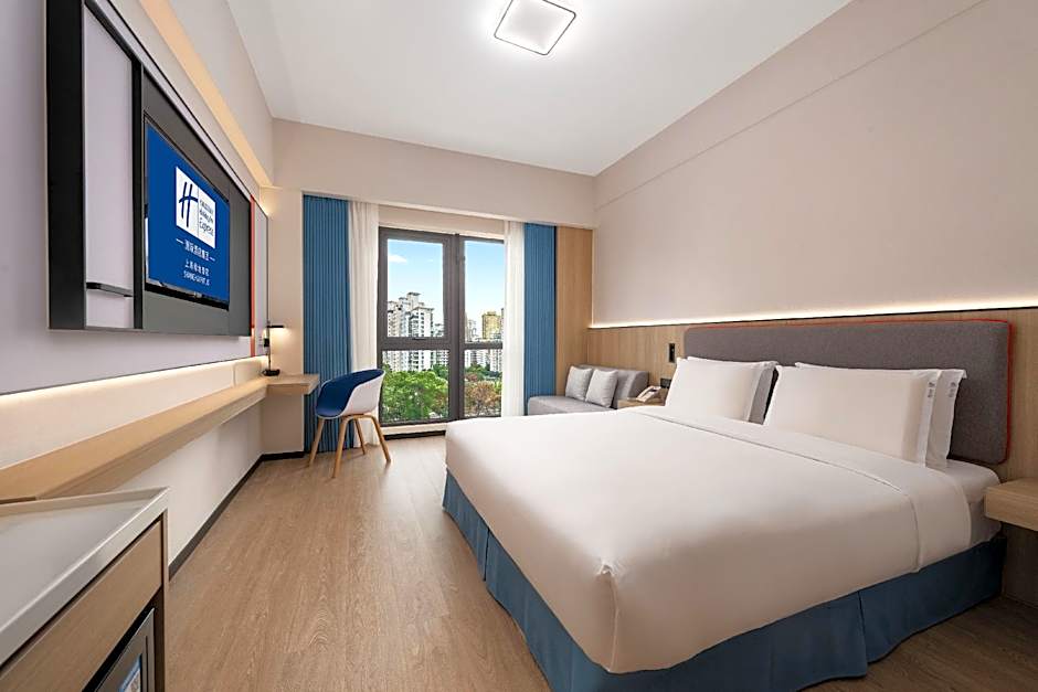 Located on high floors, room offers a queen-sized bed and floor-to-ceiling windows with views of the garden and Suzhou River.